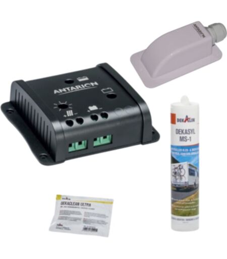 Le kit de pose en blister contient : Le régulateur solaire SC10 Un passe-toit étanche Une cartouche Dekasyl MS1 Une lingette Dekaclean Dimensions : 28 x 28 x 5 cm Poids : 0,87 kg Caractéristiques du régulateur : • Régulateurs de type PWM avec mode désulfatation pour les batteries acides • Puissance solaire de 170W maximum • Dimensions : 11,3 x 10,5 x 3 cm • Poids : 0,15 kg ...