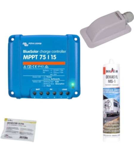 Le kit de pose en blister contient : • Le régulateur solaire MPPT15A Victron Energy • Un passe-toit étanche • Une cartouche Dekasyl MS1 • Une lingette Dekaclean Caractéristiques du régulateur : • Régulateur MPPT 15A VICTRON • Tension de sortie calculée automatiquement pour respecter les courbes de charge de la batterie. Convient pour toutes batteries acides, gel, AGM ou lithium en 12 V ou 24 V • Système Battery Life ajustant les périodes de charge et d'entretien pour optimiser la durée de vie de la batterie • Dimensions : 10 x 11,3 x 4 cm • Poids : 0,5 kg ...
