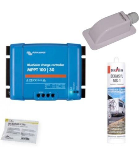 Le kit de pose en blister contient : • Le régulateur solaire MPPT30A Victron Energy • Un passe-toit étanche • Une cartouche Dekasyl MS1 • Une lingette Dekaclean Caractéristiques du régulateur : • Régulateur MPPT 30A VICTRON • Tension de sortie calculée automatiquement pour respecter les courbes de charge de la batterie. Convient pour toutes batteries acides, gel, AGM ou lithium en 12 V ou 24 V • Système Battery Life ajustant les périodes de charge et d'entretien pour optimiser la durée de vie de la batterie • Dimensions : 13 x 18,6 x 7 cm • Poids : 1.3 kg ...