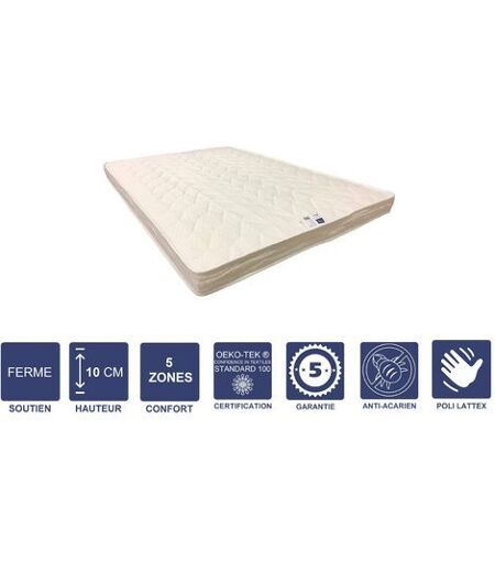 Literie Julien Matelas Ferme Avec Latex Naturel 90x190 X 10 Cm - 5 Zones De Confort - Noyau Poli Lattex Hr Dernière Génération - Très Respirant