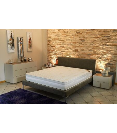 MATELAS: · Accueil : Ferme . · Soutien : Ferme . · Technologie matelas : Mousse Poli Lattex Dernière Génération · Épaisseur du matelas : +/- 23 cm. · REPOS PLUS SAIN grâce au Traitement Anti-acariens / anti-bactérien / Anti-moisissures. · Indépendance de couchage. · DORMEZ TRANQUILLE avec la Garantie 5 ans. Coutil: · Coutil stretch matelassé de 290 gr/m2 de Polyester avec traitement Sanitized. Face Hiver avec PURE LAINE MERINOS et un toucher Doux et Soyeux · Face été Tissu à l¿Aloe Vera aux nombreux Bienfaits · SANITIZED : Traitement antibactérien et anti-moisissures diminuant également le développement des odeurs. Structure et garnissage du matelas: · Plateau supérieur : coutil en tissu stretch matelassé avec 1,5 cm de mousse profilée à Haute Ventilation pour Maximiser le Confort · Plateau inférieur : coutil en tissu 3D pour la bonne Respiration du noyau matelassé Air System. · Tissu Hyper Respirant réalisé en 3 dimensions qui permet une circulation libre de l'air offrant ainsi une plus grande ventilation et d¿hygiène. · Plate-bande: Tissu Hyper RESPIRANT matelassé avec de la ouate polyester et des poignées cousues à la main. · Âme noyau : bloc de 19 cm de Mousse HAUTE RESILIENCE Poli Lattex dernière génération Indéformable · Passepoil de renfort · TISSUS CERTIFIES : Système de Qualité Certifié Oeko-tex 100 , Certipur testé contre les substances nocives. Certification ISO 9001 ...