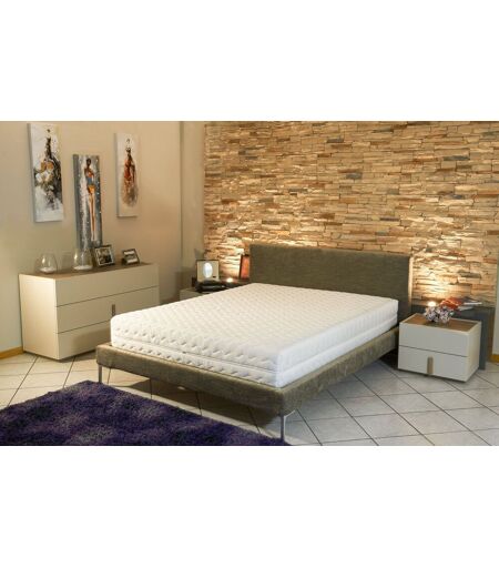 MATELAS Spécifique pour Sommier Electrique ou Mécanique: · Accueil : Moelleux . · Soutien : Ferme . · Technologie matelas : Latex 70% Naturel 75 Kg/m3 + Mousse Poli Lattex 33 Kg/m3 · Épaisseur du matelas : +/- 21 cm. · REPOS PLUS SAIN grâce au Traitement Anti-acariens / anti-bactérien · Très bonne Indépendance de couchage. · DORMEZ TRANQUILLE avec la Garantie 5 ans · Compatible avec les sommiers Articulés Mécaniques ou électriques Coutil: · Coutil stretch matelassé de 290 gr/m2 de Polyester avec traitement Sanitized. · SANITIZED : Traitement antibactérien et anti-moisissures diminuant également le développement des odeurs. · Déhoussable sur 3 Côtés et Housse Lavable à 30° position Lavage à la main Délicat Structure et garnissage du MATELAS : · Plateau supérieur : coutil en tissu stretch matelassé avec 1 cm de mousse profilée à Haute Ventilation pour Maximiser le Confort · Plateau inférieur : coutil en tissu 3D pour la bonne Respiration du Ame matelassé Air System. · Tissu Hyper Respirant réalisé en 3 dimensions qui permet une circulation libre de l'air offrant ainsi une plus grande ventilation et d¿hygiène. · Plate-bande: Tissu Hyper RESPIRANT matelassé avec de la ouate polyester . · Âme : bloc de 14 cm de Mousse HAUTE RESILIENCE Poli Lattex 33 Kg/m3 Indéformable 2 couches côtés dormeurs De Latex 70% Naturel · EXCELLENTE ADAPTABILITÉ : La structure du matelas est divisée en 7 incroyables zones de confort qui s'adaptent à tous types de morphologies et aident à libérer les tensions musculaires pour soulager les maux de dos provoqués par de mauvaises postures au cours de la journée. · TISSUS CERTIFIES : Système de Qualité Certifié Oeko-tex 100 , Certipur testé contre les substances nocives. Certification ISO 9001 ...