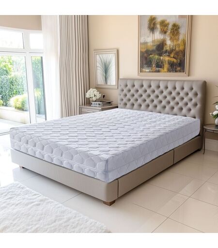 MATELAS Accueil : Ferme. Soutien : Ferme. Technologie matelas : Face été + âme en Mousse rembourrage 100 % polyester - âme 100 % polyuréthane poli latex Dernière Génération Indéformable Très Haute Résilience - Face Hiver 4 cm de face de contact Mousse à Mémoire de Forme Très Haute Densité 60 Kg/m3 " Massante" Épaisseur du matelas : +/- 19 cm. REPOS PLUS SAIN. Très Bonne Indépendance de couchage. DORMEZ TRANQUILLE avec la Garantie 5 ans. Compatible : avec les Sommiers Mécaniques et électriques. Coutil : Coutil stretch matelassé de 290 gr/m2 de Polyester. Faces de couchage : Réversibles - Déhoussable sur 3 Côtés et Housse Lavable à 30° position Lavage à la main Délicat. Structure et garnissage du matelas : Faces Dormeur : 1,5 cm de mousse profilée à Haute Ventilation pour Maximiser le Confort + coutil en tissu 3D pour la bonne Respiration du noyau matelassé Air System. Tissu : Hyper Respirant réalisé en 3 dimensions qui permet une circulation libre de l'air offrant ainsi une plus grande ...