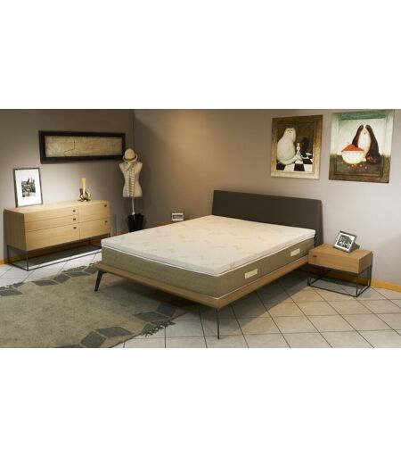 Sur MATELAS:· Technologie : Mousse Polysoff Indéformable Hyper Moelleuse · Épaisseur : +/- 5,5 cm.· REPOS PLUS SAIN grâce au Traitement Anti-acariens / anti-bactérien / Anti-moisissures.· Particulièrement adapté pour les personnes allergiques· Garantie 5 ans. Il apporte du Confort à votre MatelasTISSU :· Coutil à l'Aloé Vera avec un toucher Doux et Soyeux avec Fibre Antiallergique de polyester - L'Aloe Vera est un anti-inflammatoire, fongifuge, antibiotique et régénérateur . Elle est un moyen de purification naturelle et favorise la prolifération cellulaire.· SANITIZED : Traitement antibactérien et anti-moisissures diminuant également le développement des odeurs.· Tissu Hyper Respirant réalisé en 3 dimensions qui permet une circulation libre de l'air offrant ainsi une plus grande ventilation et d'HYGIENE .· Dessous Anti Dérapant pour bien être maintenu au Matelas· Âme noyau : bloc de 5 cm de Mousse Polysoff Indéformable Hyper Moelleuse · Déhoussable 3 Côtés Entretien Facile, Housse Lavable à 30 °· TISSUS CERTIFIES : Système de Qualité Certifié Oeko-tex 100 , Certipur testé contre les substances nocives. Certification ISO 9001· PROTEGE Matelas Imperméable Hygiènique - Ajustable pour Matelas de 13 à 35 cm de Hauteur - Absorbant et Respirant - Barrière anti-Acariens - Dessus 35% coton 65 % Polyester - Dessous en Péva: matière souple et écologique - Il prolongera la durée de vie de votre matelas ...