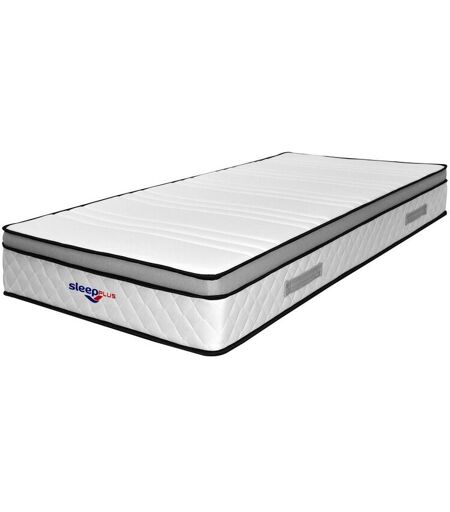 MATELAS: · Accueil : Ferme . · Soutien : Ferme . · Technologie matelas : Ressorts Ensaches ( 683 pour un matelas 140x190 ) Indeformable Tres Haute Resilience - Face Dormeur avec3,5 cm de Mousse Latex Naturel à 70 % en Tres Haute Densite 75 Kg/m3 et Mousse de confort · epaisseur du matelas : +/- 25,5 cm. · REPOS PLUS SAIN grace au Traitement Anti-acariens / anti-bacterien / Anti-moisissures. · Tres Bonne Independance de couchage. · DORMEZ TRANQUILLE avec la Garantie 5 ans. Coutil: · Coutil stretch matelasse de 290 gr/m2 de Polyester avec traitement Sanitized. · SANITIZED : Traitement antibacterien et anti-moisissures diminuant egalement le developpement des odeurs. Structure et garnissage du matelas: · Face Dormeur : 1,5 cm de mousse profilee a Haute Ventilation pour Maximiser le Confort + coutil en tissu 3D pour la bonne Respiration du noyau matelasse Air System. · Tissu Hyper Respirant realise en 3 dimensions qui permet une circulation libre de l'air offrant ainsi une plus grande ventilation et d¿hygiene. · Plate-bande: Tissu Hyper RESPIRANT matelasse avec de la ouate polyester · ame noyau : Ressorts Ensaches ( 683 pour un matelas 140x190 ) Indeformable Tres Haute Resilience · La structure du matelas est divisee en 5 Zones de Confort qui s'adaptent a tous types de morphologies et aident a liberer les tensions musculaires pour soulager les maux de dos provoques par de mauvaises postures au cours de la journee. · TISSUS CERTIFIES : Systeme de QUALITE Certifie Oeko-tex 100 , Certipur teste contre les substances nocives. Certification ISO 9001 ...