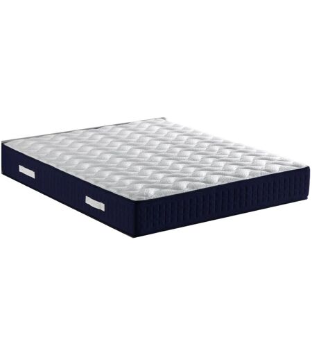 MATELAS: · Accueil : Ferme . · Soutien : Ferme . · Technologie matelas : Ressorts Ensaches ( 683 pour un matelas 140x190 ) Indeformable Tres Haute Resilience - Face Dormeur avec3,5 cm de Mousse Latex Naturel à 70 % en Tres Haute Densite 75 Kg/m3 et Mousse de confort · epaisseur du matelas : +/- 30,5 cm. · REPOS PLUS SAIN grace au Traitement Anti-acariens / anti-bacterien / Anti-moisissures. · Tres Bonne Independance de couchage. · DORMEZ TRANQUILLE avec la Garantie 5 ans. Coutil: · Coutil stretch matelasse de 290 gr/m2 de Polyester avec traitement Sanitized. · SANITIZED : Traitement antibacterien et anti-moisissures diminuant egalement le developpement des odeurs. Structure et garnissage du matelas: · Face Dormeur : 1,5 cm de mousse profilee a Haute Ventilation pour Maximiser le Confort + coutil en tissu 3D pour la bonne Respiration du noyau matelasse Air System. · Tissu Hyper Respirant realise en 3 dimensions qui permet une circulation libre de l'air offrant ainsi une plus grande ventilation et d¿hygiene. · Plate-bande: Tissu Hyper RESPIRANT matelasse avec de la ouate polyester · ame noyau : Ressorts Ensaches ( 683 pour un matelas 140x190 ) Indeformable Tres Haute Resilience · La structure du matelas est divisee en 5 Zones de Confort qui s'adaptent a tous types de morphologies et aident a liberer les tensions musculaires pour soulager les maux de dos provoques par de mauvaises postures au cours de la journee. · TISSUS CERTIFIES : Systeme de QUALITE Certifie Oeko-tex 100 , Certipur teste contre les substances nocives. Certification ISO 9001 ...