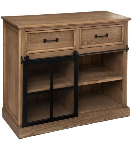 Découvrez le buffet avec 2 tiroirs et 1 porte vitrée. Ce meuble vous garantira un bel espace de rangement. Dimension : Longueur 94 x Profondeur 40 x Hauteur 85 cm Matière: MDF/ Fer / Verre trempé Couleur: Marron caramel Poids : 32 Kg ...