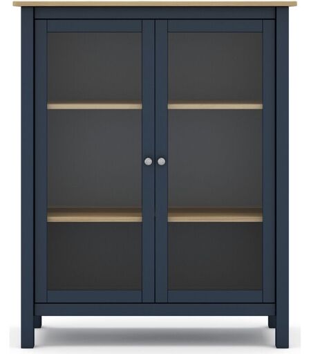 Pegane - Vitrine en pin massif chêne et bleu, meuble de rangement avec 2 portes - Longueur 90 x Profondeur 40 x Hauteur 110 cm