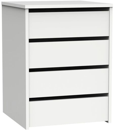 Commode de rangement 4 tiroirs en panneaux de particules et mélamine haute densité coloris blanc brillant. Produit de fabrication Espagnol certifié PEFC. Livré en kit. Dimensions : Hauteur 61 x Longueur 46 x Profondeur 45 cm Matière : panneaux de particules et mélamine haute densité Coloris : Blanc brillant Poids : 16 kg ...
