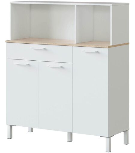 Buffet meuble cuisine 3 portes + tiroir coloris blanc artic / chêne canadien - Hauteur 126 cm x Longueur 108 cm x Profondeur 40 cm Pegane