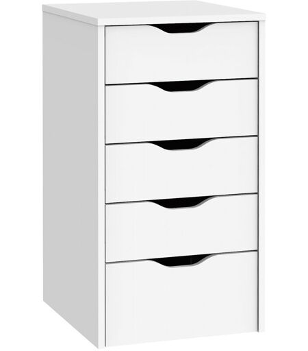 Description générale Cette commode caisson de bureau est conçue en panneaux de particules et mélamine haute densité de couleur blanche. Elle est équipée de 5 tiroirs avec guides métalliques, offrant à la fois fonctionnalité et esthétisme. Fabriquée en Espagne, ce produit est certifié PEFC, garantissant une gestion durable des ressources forestières. Spécifications techniques Matière : Panneaux de particules et mélamine haute densité Coloris : Blanc Poids : 19 kg Dimensions : Hauteur 71 cm x Longueur 40 cm x Profondeur 43 cm Dimensions intérieures des tiroirs : Hauteur 10 cm x Longueur 31 cm x Profondeur 33 cm Dimensions intérieures du tiroir inférieur : Hauteur 14 cm x Longueur 31 cm x Profondeur 33 cm Compatibilité et accessoires Cette commode peut être associée à divers accessoires de rangement afin d'optimiser l'espace de votre bureau. Installation Le produit est livré en kit, avec toutes les pièces nécessaires pour une installation facile. Suivez les instructions fournies pour un ...
