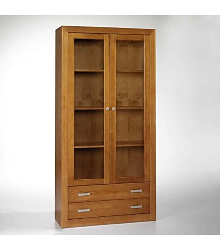Vitrine meuble de rangement en pin massif coloris cerisier de 2 portes et 2 tiroirs , Livré en kit Dimensions : Longueur 100 x Profondeur 37 x Hauteur 200 cm Matière : pin massif Couleur : Cerisier Poids : 48 kg ...
