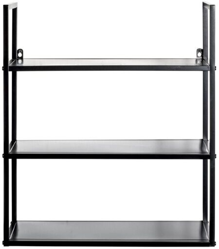 Etagère murale, meuble étagère murale en tube d'acier laqué noir, plateaux en métal laqué noir. Dimensions : longueur 50 x profondeur 20 x hauteur 58 cm Charge maximale : 15 kg Matière : métal Couleur : noir. Poids : 4 KG ...