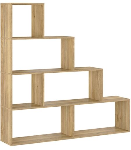 PEGANE Etagère escalier, meuble étagère avec 6 compartiments coloris chêne Mauvella - Longueur 144,9 x profondeur 27,90 x hauteur 143,30 cm