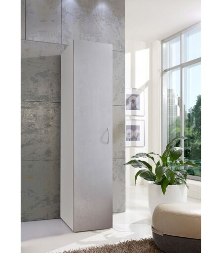 Pegane - Armoire, meuble de rangement avec 1 porte coloris blanc, rechampis imitation béton gris clair - longueur 40 x hauteur 185 x profondeur 40 cm