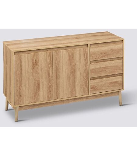 Buffet, meuble de rangement en bois équipé de 2 portes et 3 tiroirs de rangement coloris Beige. A monter soi-même. Dimensions : Longueur 120 x Profondeur 39 x Hauteur 76 cm Matière: bois Coloris : Beige Poids: 32.50 Kg ...