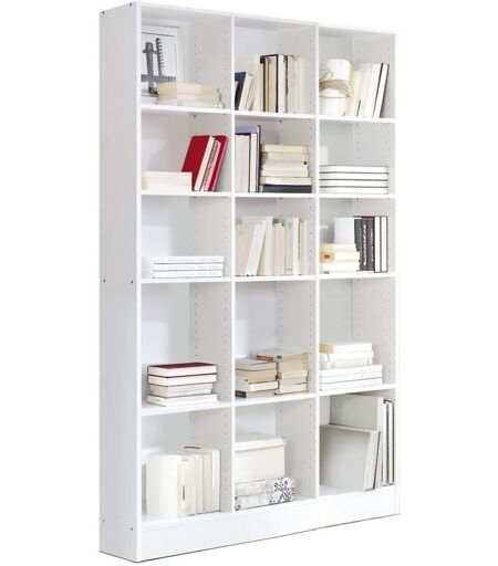 Etagère, bibliothèque équipée de 15 tablettes coloris blanc en panneaux de particules mélaminés. Produit de fabrication Espagnole. Meuble livré en kit. Dimensions : longueur 121 x profondeur 33 x hauteur 186 cm Matière : panneaux de particules mélaminés Coloris : blanc Poids : 33 KG ...