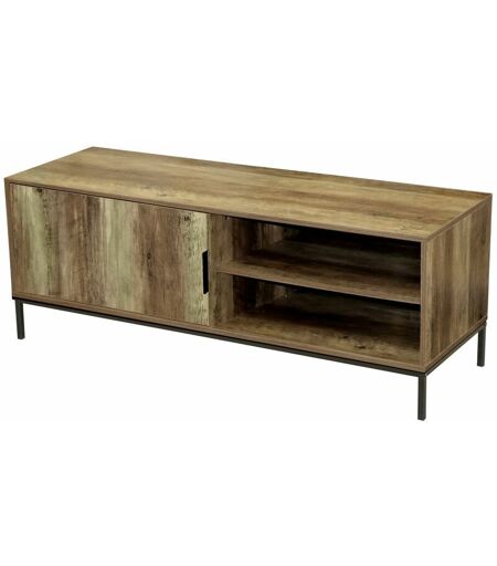 Toilinux - Meuble tv Joya avec 1 porte et 2 niches de rangement - Bois foncé et noir