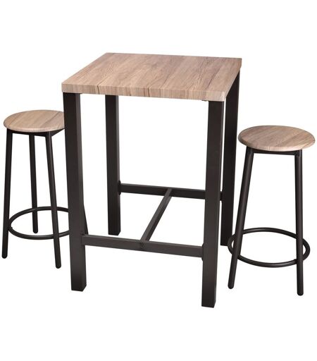 Description générale Décorez votre salle à manger de manière industrielle avec cette table bar alliant fonctionnalité et esthétisme. Idéale pour les petits espaces, elle optimise l'utilisation de l'espace tout en offrant un coin repas confortable pour deux personnes. Spécifications techniques Structure de la table et des chaises en métal Assise et plateau en MDF recouverts d'une feuille en PVC imitation chêne Dimensions de la table : L. 60 x l. 60 x H. 86 cm Dimensions des tabourets : Diam. 30 x H. 62,5 cm Poids : 18 kg Compatibilité et accessoires Table bar avec deux tabourets inclus Installation Assemblage simple et rapide Utilisation Parfaite pour les repas en duo Convient également pour les espaces de travail ou les pauses café ...