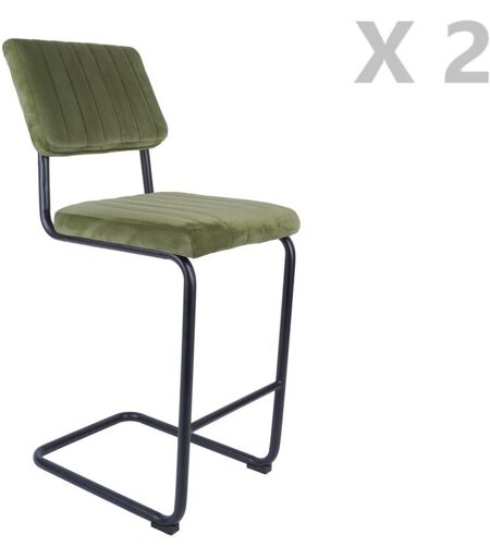 Lot De 2 Tabourets De Bar Cantilevers Design Effet Velours Keen - Vert