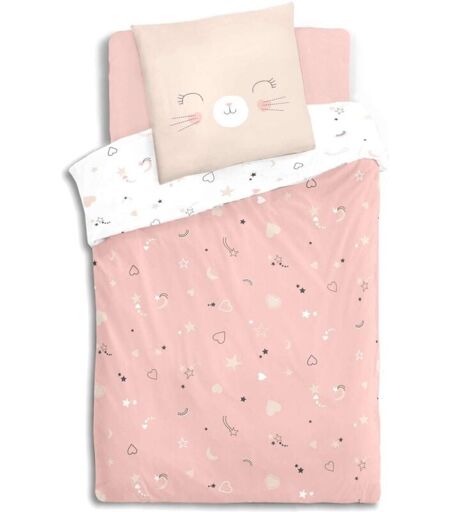 Composée d'une housse de couette et d'une taie d'oreiller, cette parure de lit pour enfants est la touche ultime pour apporter fantaisie et douceur à leur décoration. FICHE TECHNIQUE - Parure comprenant une housse de couette et une taie d'oreiller - Matière : 100% coton 57 fils/cm² - Housse réversible, imprimée des deux côtés - Avec boutons - Couleur : Rose et blanc - Convient parfaitement pour un lit 1 place CARACTERISTIQUES TECHNIQUES - Dimensions de la housse de couette : Longueur 200 cm x Largeur 140 cm x Epaisseur 0,3 cm - Dimensions de la taie d'oreiller : Longueur 65 cm x Largeur 65 cm - Poids : 0,8 kg ...