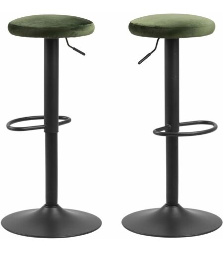 Les tabourets de bar de cette gamme allient modernité et confort. On aime que la hauteur soit réglable. L'assise et le repose pied vous offriront une stabilité très confortable. FICHE TECHNIQUE - Lot de 2 Tabourets de bar. - Gamme : Finch. - Détails : avec repose pieds et hauteur réglable. - Matière : 100% polyester. - Structure du pied en métal. - Couleur : Vert et Noir. - Pied en forme de trompette, de couleur noir mat. - Stabilité assuré. - Facile à monter. - Notice inscluse. CARACTERISTIQUES TECHNIQUES - Dimensions : Diamètre 40 cm x Hauteur 82 cm. - Hauteur du pied : 56 cm. - Hauteur d'assise minimale : 62 cm. - Hauteur d'assise maximale : 82 cm. - Dimensions de l'assise : diamètre 33 cm. - Poids d'un tabouret : 6,400 kg. - Poids maximal supporté : 110 kg. ...