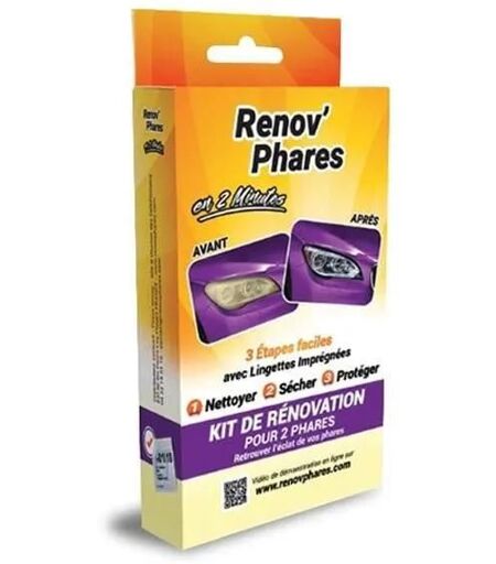 Une mé.thode rapide et une formule exclusive pour ré.cupé.rer vos phares ternis et é.viter la contre-visite au contrô.le technique grâ.ce à. Renov'phares Irontek kit de ré.novation optique pour phares.Nettoyez votre phare avec la premiè.re lingette du sachet 1 (sachet jaune). Renouvelez l'opé.ration avec la lingette du deuxiè.me sachet 1 pour votre deuxiè.me phare (sachet jaune). Sé.chez la surface avec une serviette en papier. Appliquez le traitement exclusif de la lingette du sachet 2 (sachet rouge). Constatez le ré.sultat ! Ce produit convient à. tous types de phares. Kit composé. de 3 lingettes: 2 lingettes impré.gné.es pour le nettoyage et une lingette de finition impré.gné.e d'une solution de vernis protecteur. Pour plus de renseignements concernant le Renov'phares Irontek kit de ré.novation optique pour phares et les risques d'utilisation, merci de vous ré.fé.rer à. la ".fiche sé.curité.". accessible ci-dessus. - ...