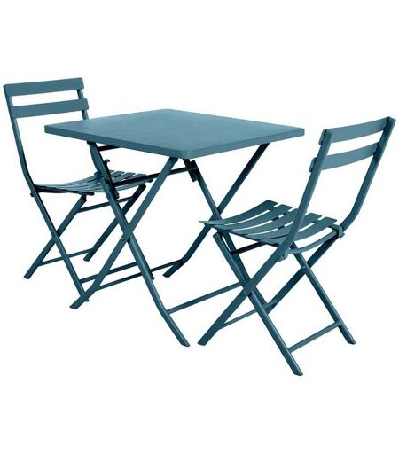 Hesperide Salon De Jardin Carré En Métal Greensboro 70 X 70 Cm Bleu Canard Avec 2 Chaises - Hespéride