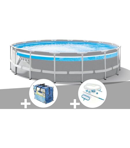 Kit piscine tubulaire Intex Prism Frame Clearview ronde 4,88 x 1,22 m + Bâche à bulles + Kit d'entretien