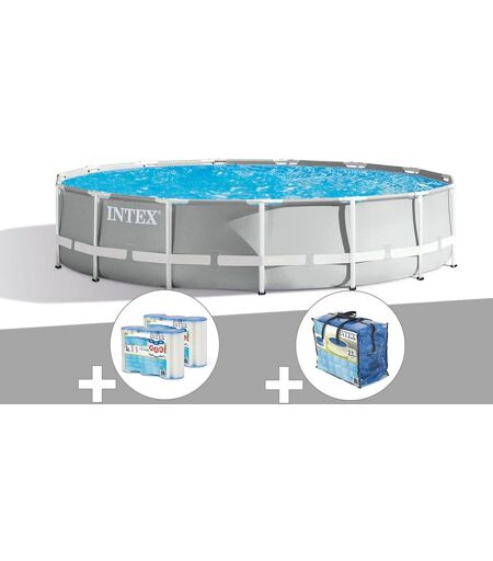 Kit piscine tubulaire Intex Prism Frame ronde 4,57 x 1,07 m + Bâche à bulles + 6 cartouches de filtration