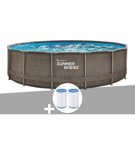 Piscine tubulaire Summer Waves Active Frame Pool ronde effet rotin 4,57 x 1,06 m + 6 cartouches de filtration