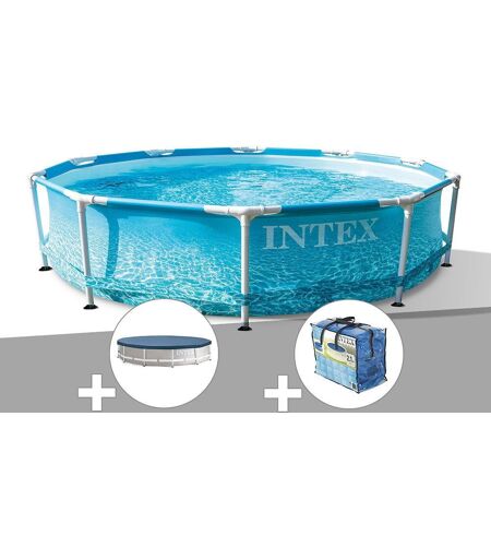 Kit piscine tubulaire Intex Metal Frame Ocean ronde 3,05 x 0,76 m + Bâche de protection + Bâche à bulles