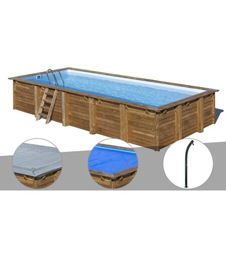 Gre Kit piscine bois Gré Braga 8,15 x 4,20 x 1,46 m + Bâche hiver + Bâche à bulles + Douche