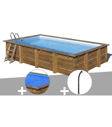 Gre Kit piscine bois Gré Evora 6,20 x 4,20 x 1,33 m + Bâche à bulles + Douche