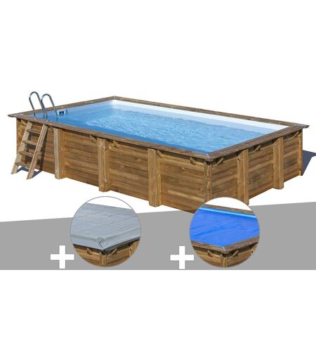 Gre Kit piscine bois Gré Evora 6,20 x 4,20 x 1,33 m + Bâche hiver + Bâche à bulles