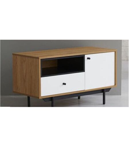 Description: Ce meuble TV aux couleurs épurées trouvera facilement sa place dans votre salon. Doté d'un tiroir, d'une niche ouverte et d'un placard, il est pratique et tendance. Coup de cœur pour ses pieds en métal ! Un meuble aux lignes tendance Le meuble TV "Berlin" revisite avec élégance les grands classiques de l'ameublement. Ses pieds en métal et son placage en bois confirment sa modernité. Ce meuble TV en bois au volume réduit s'adaptera facilement à une petite pièce. Il dispose d'un tiroir pratique, d'une niche ouverte et d'un placard. Donnez du style à votre salon ou à votre chambre avec ce meuble TV tendance. Composée d'une niche ouverte et d'un tiroir, elle s'adaptera à tous les types d'intérieurs. Spécificités techniques: Dimensions : L. 90 x l. 39.6 x H. 50 cm Composée d'une niche ouverte d'un placard et d'un tiroir Dimensions tiroir : L.43,8 x P.33,4 x H.9,3 cm Dimensions niche : L.46 x P.37,5 x H.12,8 cm Dimensions du placard : L.36,2 x P.37,8 x H.31,8 cm Matière de la ...