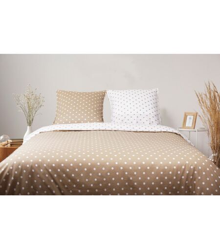 Blanc Avenue Paris - Parure de couette Pois Capuccino - 100% Coton / 57 Fils/cm² - Parure de couette 200 x 200 cm + 2 Taies d'oreiller 65 x 65 cm
