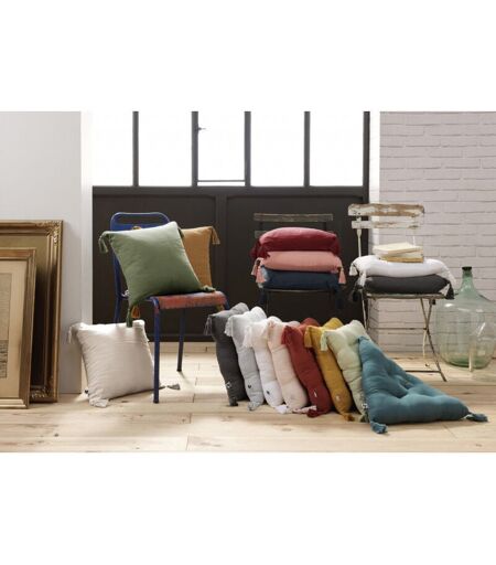 L'effet Papillon - Coussin capitonné 5 points avec pompons 'Gaïa' 40 x 40 cm 'Gaze de Coton' - Couleur: Gaïa Lie de Vin