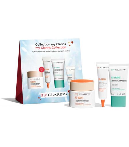 Clarins My Clarins Xmas Collection, , Nettoyant pour femme, Tout le nécessaire pour une belle peau en un seul produit. Le coffret cosmétique Clarins My Clarins Xmas Collection ne contient pas un, mais plusieurs produits qui vous permettront de créer ou d’enrichir votre routine de soins ou celle de la personne à laquelle vous l’offrirez. L'ensemble contient: My Clarins Re-Fresh Eye De-Puffer gel contour des yeux anti-cernes et anti-poches 15 ml My Clarins Re-Boost Hydra-Energizing Cream sérum énergisant de jour pour peaux jeunes 50 ml My Clarins Re-Charge Relaxing Sleep Mask masque de nuit pour une hydratation intense 15 ml Clarins My Clarins Re-Move Purifying Cleansing Gel gel nettoyant visage pour peaux à imperfections 5 ml Le produit : ensemble de produits cosmétiques pour une utilisation au quotidien pour prendre soin du visage et le revitaliser convient pour apaiser les peaux sensibles et irritées pour une hydratation intense du visage Mode d’emploi : Utilisez chacun des produits de ce coffret cosmétique en respectant son mode d’emploi. ...