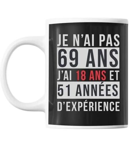 Mug 69 Ans Expérience Noir Tasse Cadeau Personnalisé