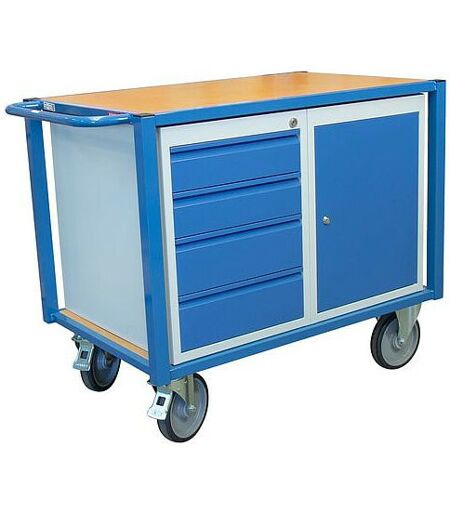 Servante établi équipée charge 500 kg 1 bloc porte et 1 bloc tiroirs 1060 x 680 mm Diam roues 200 mm - Fimm