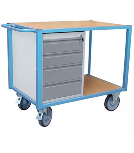INDUSTRIE - Chariot employé par les industries manufacturières, de fabrication et de production - Etabli d'atelier idéal pour le stockage et la manutention de pièces MAINTENANCE - Etabli mécanique pour la réparation et la maintenance de pièces mécaniques - Chariot d'atelier recommandé pour les techniciens de maintenance AUTOMOBILE - Chariot d'atelier utilisé par les garagistes, concessionnaires automobiles, etc... - Etabli pour atelier adapté pour le rangement des outils de réparation 1 BLOC TIROIRS VERROUILLABLE - 4 tiroirs avec deux hauteurs différentes pour organiser facilement les fournitures, outils, etc... - Capacité de 30 kg chaucun pour ranger un grand nombre de pièces, outils et documents - Verrou avec un jeu de 2 clés pour sécuriser l'accès aux marchandises POIGNEE ERGONOMIQUE - Poignée de poussée horizontale placée à une hauteur ergonomique - Permet de positionner les charges dépassant du plateau sans gêné la prise en main PLATEAU BOIS HAUTE RESISTANCE - Plateau bois médium ...