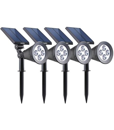 LUMI JARDIN Lot de 4 spots solaires projecteurs SPIKY Noir Plastique 100LM
