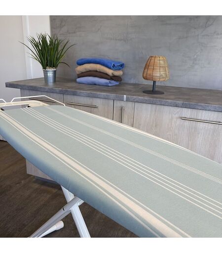 Table à repasser pliable BERMUDE Fabriqué en Europe. Grande planche à repasser. Dimension du grand plateau ergonomique : 124x40 Poids 7.9Kg. Hauteur réglable jusqu'à 94 cm. Verrou de sécurité. La Table à repasser pliable BERMUDE ne peut pas s'effondrer accidentellement. système de fermeture sécurisé. Planche à repasser stable en métal. 2 pieds solides et ergonomiques. Diamètre 35 mm et épaisseur de l'acier : 1mm. Pieds antidérapants. Structure en acier durable et solide pour une qualité opitimum garantie ! Housse 100% Coton qui favorise la glisse du fer mais aussi la durabilité de la housse avec inclus une mousse 8 mm pour plus de confort de repassage. Housse amovible lavable. Rembourrage confortable ultra épais pour une surface de repassage lisse. Couleur rayée bleu et blanc. Dotée d'un repose-fer vapeur pour les droitiers et les gauchers. Ce repose-fer s'adapte à la plupart des centrales vapeur et fer classique. Il est également résistant à la chaleur. ...