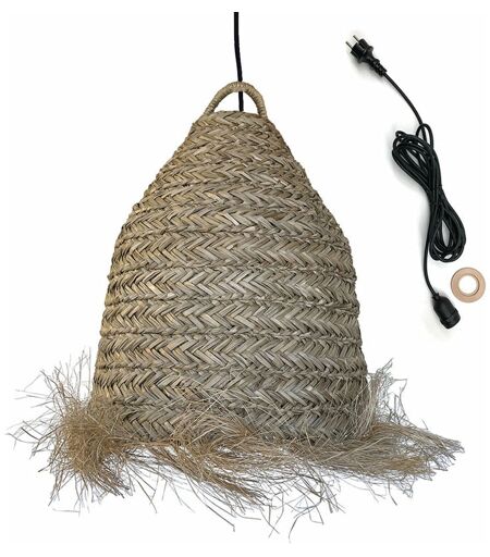 ABAT-JOUR EN JONC DE MER NATUREL : La suspension ANAFI OUTDOOR CABLE, issue de l'artisanat, est fabriquée en jonc de mer naturel. Le jonc de mer provient d'une plante aquatique et pousse les pieds dans l'eau, donc insensible à l'humidité. C'est une fibre à la fois souple et rigide qui permet une multitude de formes. Exotique et chaleureuse, elle mettra en lumière un intérieur moderne et va s'adapter parfaitement à un style plus bohème ou vintage grâce à son look ethnique chic. Son tressage unique va sublimer votre espace de vie. Dimensions : 41 x 41 x 47 cm CÂBLE AVEC DOUILLE E27 : La suspension ANAFI OUTDOOR CABLE est équipée d'un câble pour l'extérieur d'une longueur confortable de 5 mètres. Suspendez-la sur une branche d'arbre, sous un parasol ou encore une pergola, pour créer une ambiance lumineuse chaleureuse sur votre terrasse ou dans votre jardin. Branchement sur secteur 220-240V. UTILISATION EXTÉRIEUR : La suspension ANAFI OUTDOOR CABLE est conçue pour une utilisation en ...