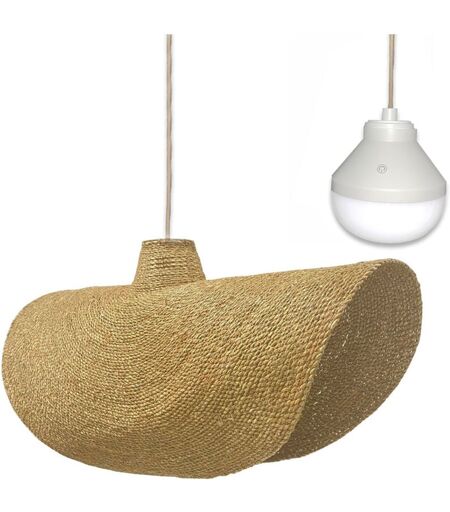 SUSPENSION EN HERBE MARINE : La suspension KLEIA NOMAD issue de l'artisanat, est fabriquée en herbe marine tressée. Exotique et chaleureuse, elle mettra en lumière un intérieur moderne et va s'adapter harmonieusement à un style plus bohème ou vintage grâce à son look ethnique chic. Son tressage unique va sublimer votre espace de vie.Dimensions : ø90 x H13 cm NOMADE : KLEIA NOMAD est livrée avec l'ampoule LED autonome LYS (blanc et multicolore) et peut être suspendue n'importe où à l'aide de sa corde naturelle. La plaque métallique permet de positionner l'ampoule aimantée dessous ou de l'accrocher grâce au crochet fourni. L'ampoule nomade LYS est livrée avec une télécommande qui permet de la commander à distance. À vous de choisir selon l'ambiance souhaitée ! UTILISATION EXTÉRIEUR : La suspension KLEIA NOMAD est conçue pour une utilisation en extérieur grâce à son indice de protection IP64 qui lui permet d'être protégée contre les projections d'eau de toutes directions. KLEIA NOMAD est ...