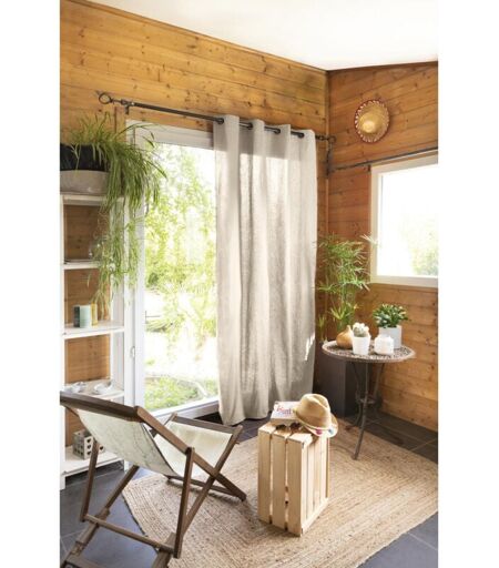 L'effet Papillon - Rideau 100% coton prélavé 140 x 260 cm Kala Beige grège