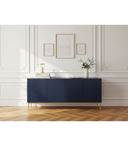 Buffet 4 portes 200 cm KASHA Pieds or bleu foncé BOBOCHIC