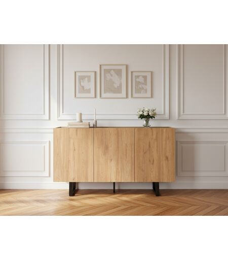 Buffet 3 portes 140 cm OPERA effet chêne et imitation marbre noir BOBOCHIC