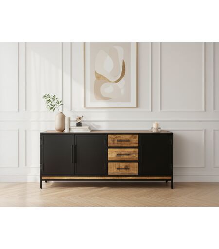 Buffet 3 portes 200 cm BEAUBOURG bois massif de manguier BOBOCHIC